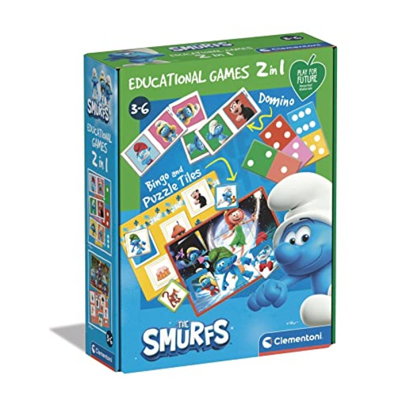 Step into the magical world of The Smurfs with this delightful 2-in-1 educational game from Clementoni. Perfect for little learners, it sparks imagination and playful discovery, featuring beloved characters like Papa Smurf and Smurfette. The game cleverly combines fun and learning by offering two exciting ways to play: a domino game to develop logic and association, and a colourful bingo game that encourages attention and matching skills.