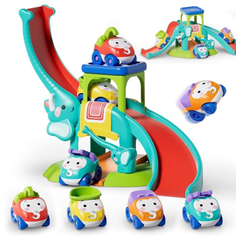 Lehoo Elephant Cars Toddler Track & Slide Playset