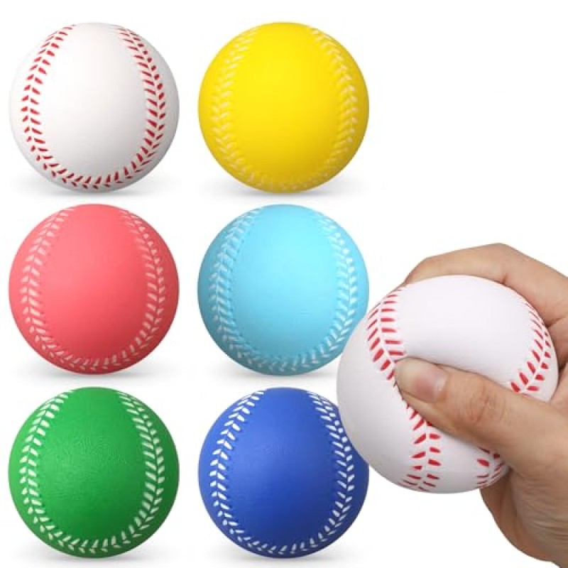 Mini Foam Baseballs for Hand Therapy and Stress Relief, 6-Pack