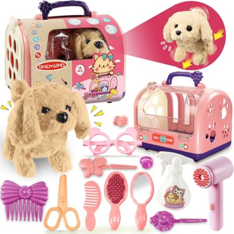 Step into the joyful world of pet care with this charming 14-piece plush puppy set that brings a robot dog to life! This interactive pet walks, barks, and wags its tail when you pat its head, creating magical moments that spark kindness and imagination. Perfectly sized for little hands, the soft, cuddly fabric invites endless hugs while inspiring playful learning.