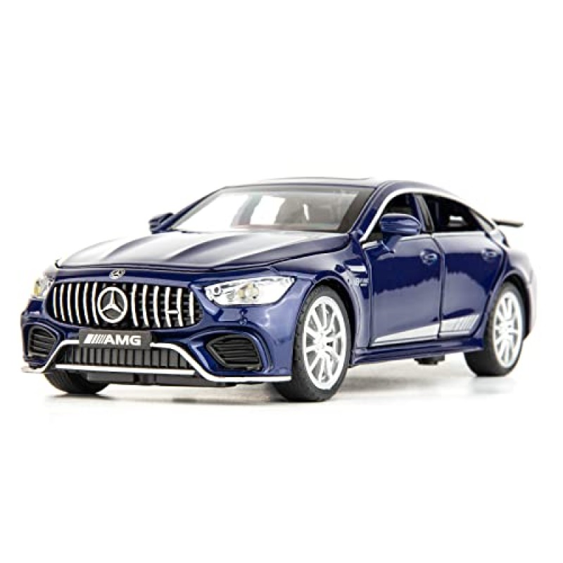 Zoom into a world of imagination with this detailed 1/32 scale diecast Benz AMG GT63 model car! Crafted from high-quality zinc alloy with rubber tyres and an environmentally friendly ABS interior, this little marvel feels like the real deal. Kids will love opening the four doors, front hood, and rear cover to explore every nook and cranny of the luxurious interior. Press the wheel or swing open the doors to hear engine sounds and see bright lights bring the car to life. Pull it back and watch it race forward with a strong pullback mechanism, perfect for exciting play sessions.