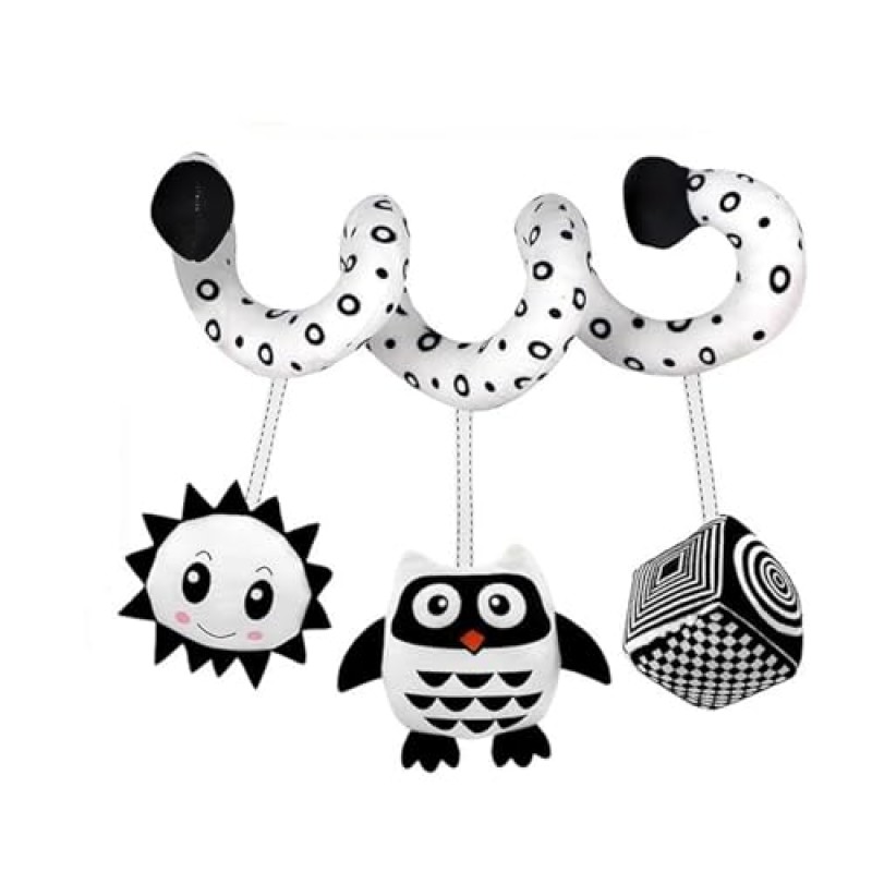 - Function: hanging spiral toy - attaches easily to car seats or strollers